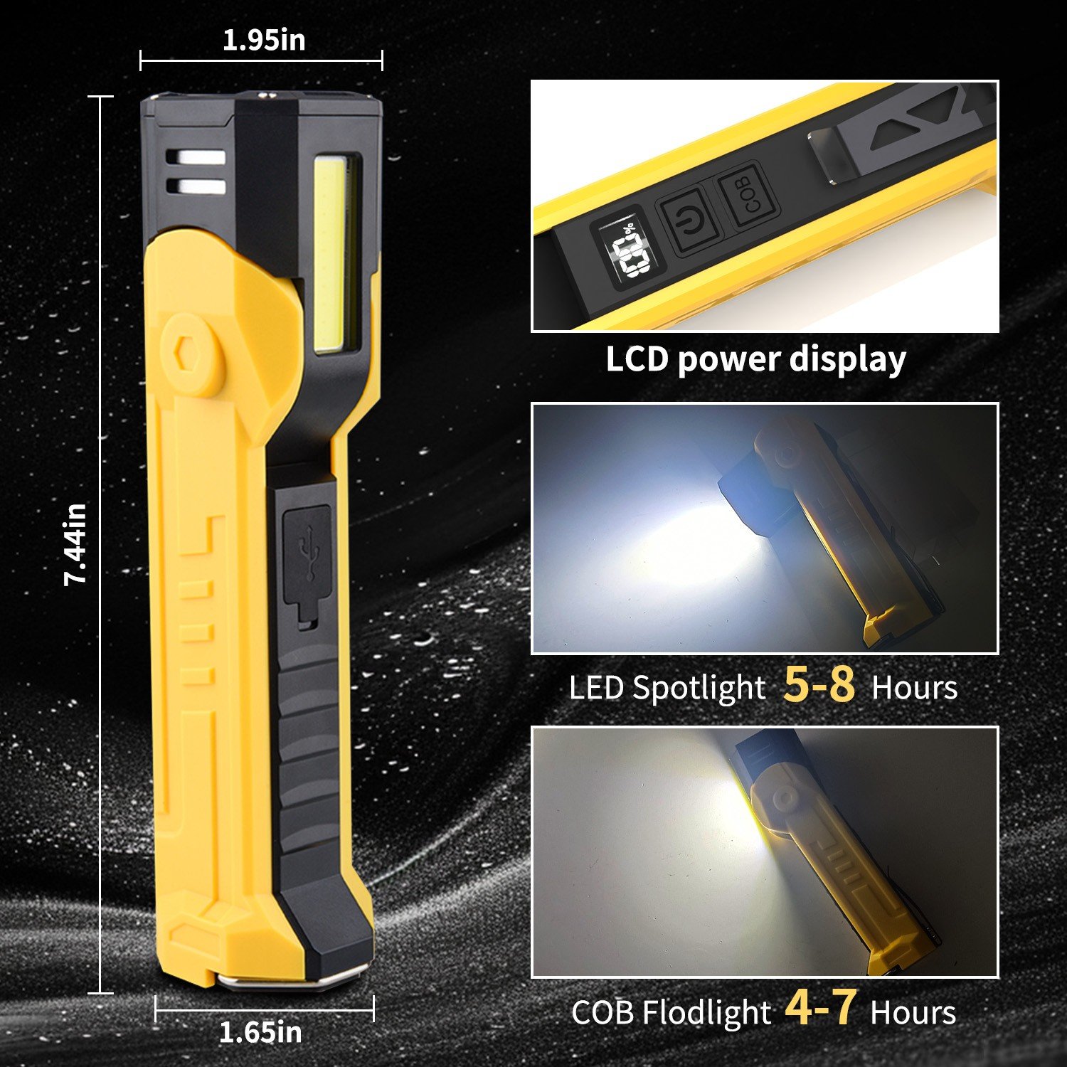 Lanterna Multifunctionala LED Superfire GM06, USB-C, 1500mAh, 355lm, 216m, power bank, prindere magnetica,, lumina rosie, IP44 – Galben Iluminat de urgenta pentru exterior-acasa-alpinism-ciclism-pescuit, montat in masina.a. Unghiul de 180 de gradee, capul lampii poate fi reglat. Poate fi folosit ca baterie externa. Echipata cu interfete de descarcare USB Type-C si USB-A, poate incarca dispozitive electronice precum telefoane mobile, casti si tablete in timpul lucrului in aer liber, campingului si calatoriilor. Partea inferioara adopta un design cu aspiratie magnetica, care se ataseaza usor de suprafata metalica. Este echipata cu carlige si cleme pentru pixuri, permitandu-va sa o agatati liber. Specificatii: Lumeni: 355 Lumeni 216 Lumeni Putere 10 W 20 buc LED COB Greutate 187 g (inclusiv baterii) Dimensiuni 190 mm Ãmdash; 50 mm Ãmdash; 42 mm Culoare Rosu Galben Clasa de protectie impotriva apei IP44 Autonomie aproximativa 2 ore Distanta 162 m Baterie incorporata Baterie 18650 1500 mAh Moduri: lumina principala lumina slaba – lumina principala lumina puternica – lumina principala intermitenta COB alb lumina slaba – COB alb lumina puternica – COB rosu lumina intermitenta – COB rosu