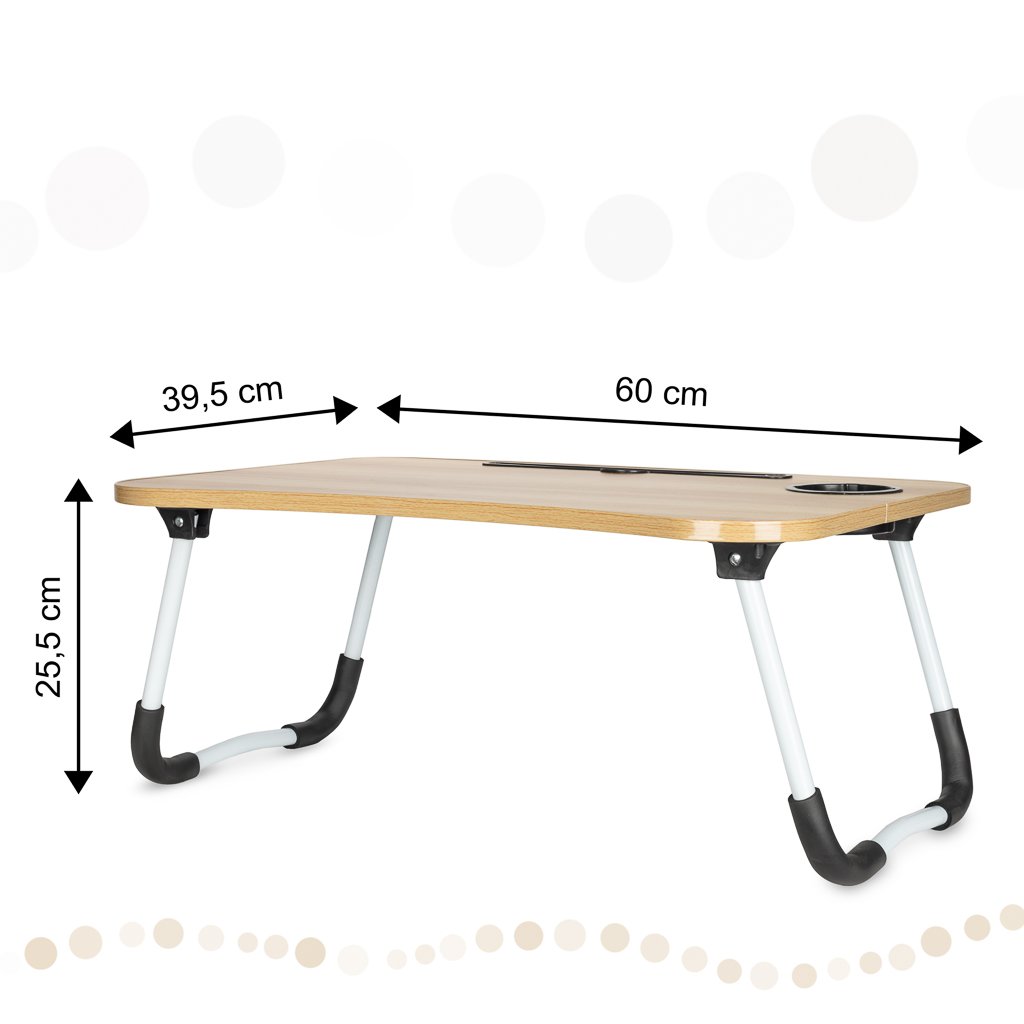 Specification: Masa pentru Laptop plianta din MDF, dimensiune 60 x 39,5 cm, cu suport pahar si telefon