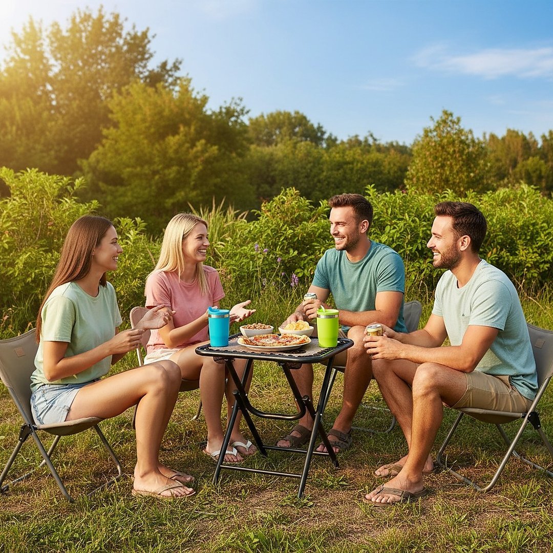 Be the first to review “Masa turistica pliabila pentru camping, cu suport pahare, 50x50x50 cm, maro”