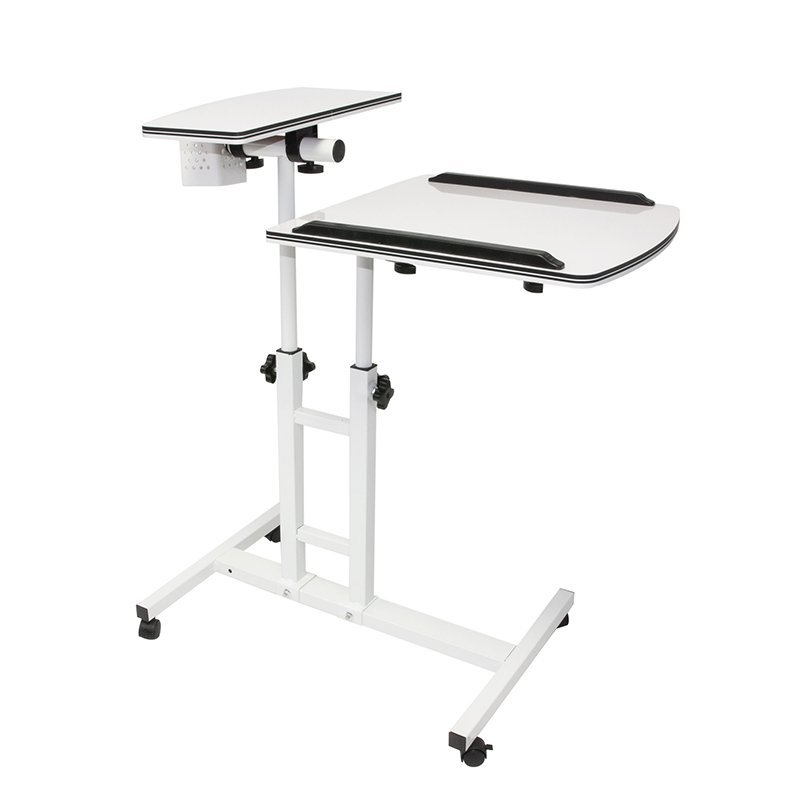 Specification: Masuta laptop reglabila cu 2 blaturi acrilice, pe roti cu blocare, 60-90 cm, alb perlat
