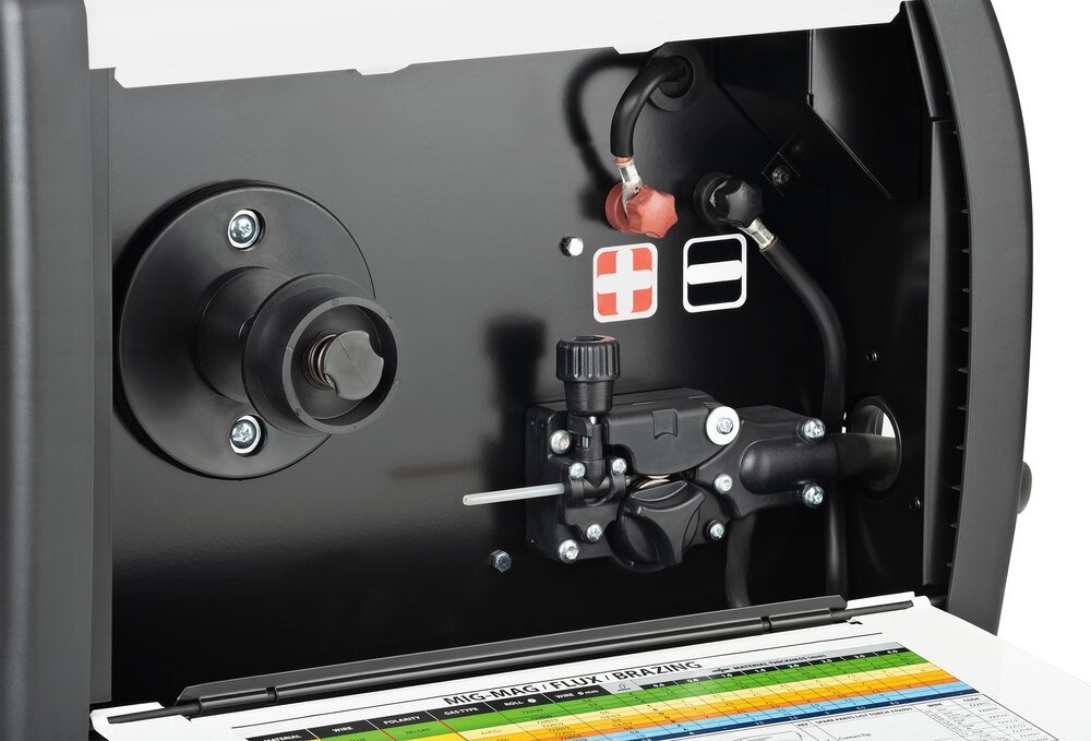 – reglare sinergica prin setarea doar a grosimii materialului (la sudura MIG-MAG) – in functie de valoarea grosimii, aparatul isi regleaza automat tensiunea si viteza de derulare a sarmei