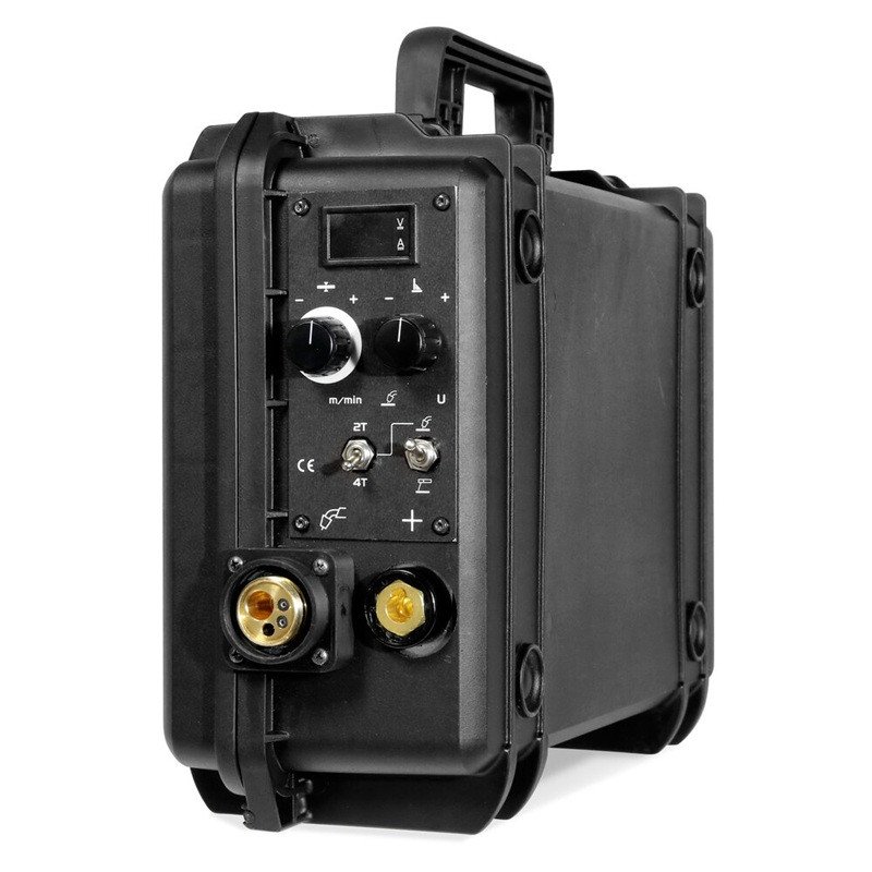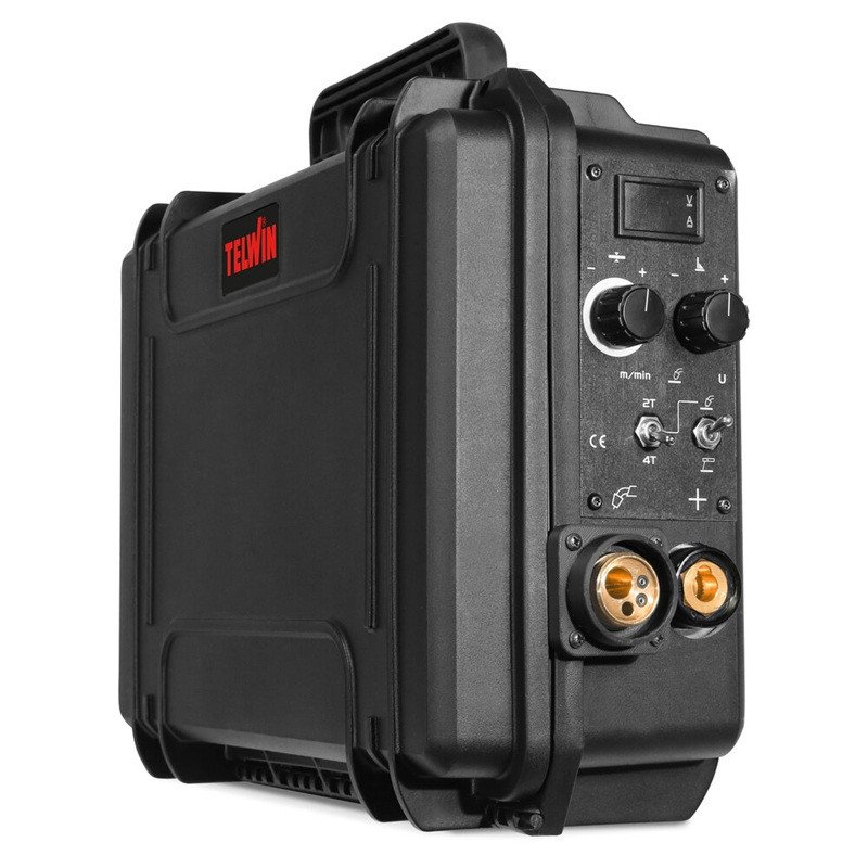 Tehnologia ATC (Made in Telwin) permite obtinerea unor suduri excelente pe suprafete subtiri, cu mare usurinta, datorita controlului avansat al arcului. Mecanismul de avans cu 4 role, amplasat in carcasa de transport, imbina robustetea cu portabilitatea. Carcasa rezistenta la impact si factori de mediu protejeaza eficient unitatea chiar si in cele mai dificile conditii. Greutatea redusa, dimensiunile compacte si manerul ergonomic asigura transportul facil atat in atelier, cat si pe santierele cele mai indepartate.