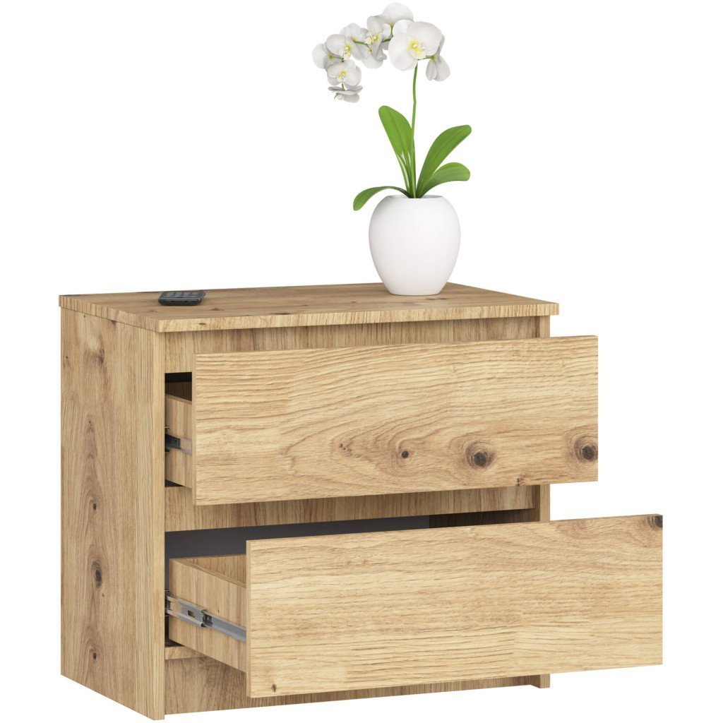 Noptiera cu 2 sertare din PAL laminat 16 mm, 60x40x55 cm, stejar artisan