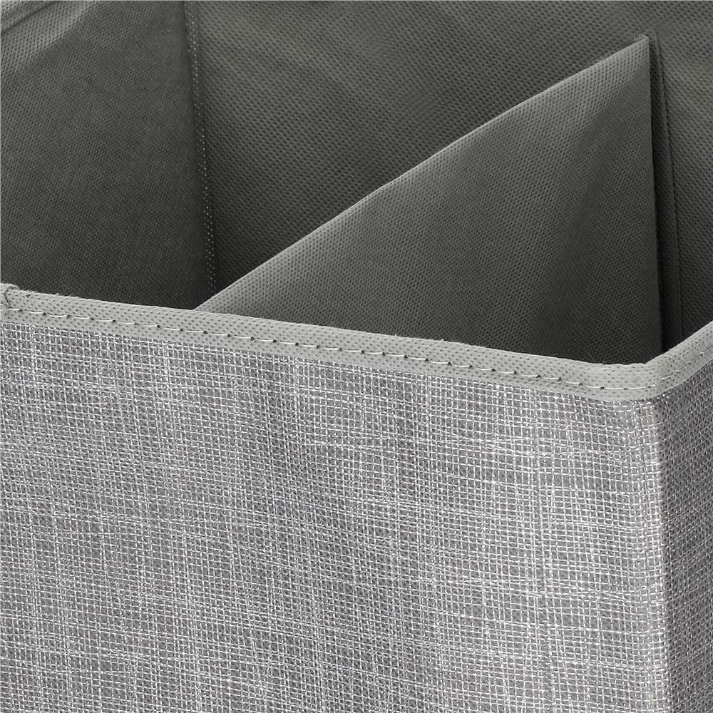 Organizatorul va asigura ca fiecare camera va fi ingrijita si ordonata. Setul este format din 4 cutii diferite care vor avea grija de lenjerie, curele sau sosete. Organizatoarele permit o mai buna gestionare a spatiului in sertare. Datorita acestora, elementele sortate sunt usor de gasit, astfel nu pierzi timpul, de exemplu, in cautarea unui al doilea ciorap. Produsul este fabricat din material netesut rezistent. Peretii laterali rigidizati ai organizatorului fac structura stabila si impiedica indoirea. Culorile clasice se vor potrivi frumos in orice dulap si garderoba. Organizatoarele sunt foarte usoare de desfasurat si pliat. In plus, datorita structurii lor usoare, sunt usor de mutat in alte locuri.Setul include trei organizatoare ceva mici si unul mai mare. O astfel de diviziune permite selectarea diferitelor elemente, cum ar fi bijuterii sau lenjerie intima. Sunt perfecte pentru camera unui copil pentru a sorta jucariile mici sub forma de figurine sau accesorii din plastic. Pot fi folosite si pentru depozitarea produselor cosmetice in baie sau a lenjeriei in dressing. Parametri :Culoare: griNumarul de organizatori din set: 4Material: material netesutConstructie stabila cu parti laterale rigidizateCel mai mare organizator:latime: 30 cmlungime: 30 cminaltime: 21 cmOrganizator mediu:latime: 30 cmlungime: 21 cminaltime: 14,5 cm2 organizatori mici cu:latime 15 cmlungime 21 cminaltime 14,5 cm