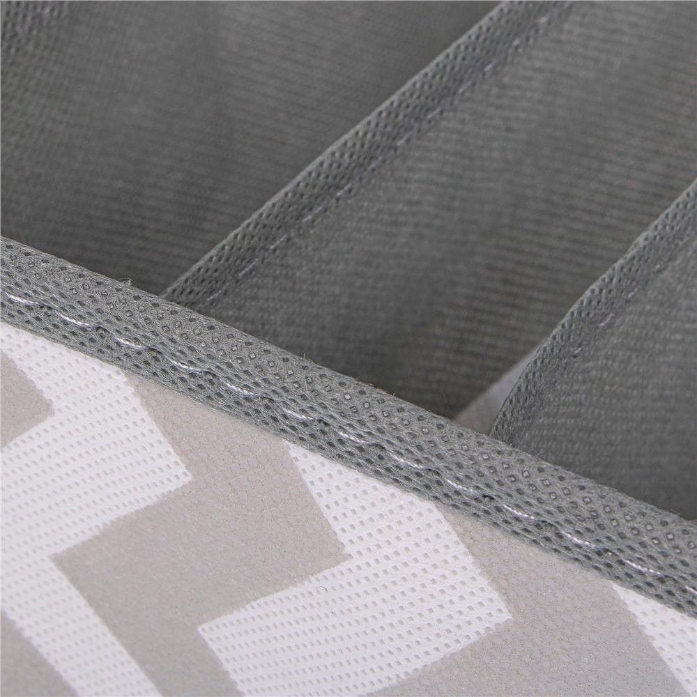 Organizator pentru sosete, 7 compartimente Problema sosetelor pierdute nu va mai exista cu acest organizator care va ajuta sa le depozitati in ordine si sa le aveti mereu la indemana. Organizatorul pliabil dispune de 7 compartimente in care puteti depozita sosetele, cravate, lenjerie de corp.Organizatorul poate fi depozitat in sertar sau dulap acesta potrivindu-se cu majoritatea sertarelor standard. Este foarte practic si poate fi luat cu dumneavoastra oriunde datorita dimensiunilor compacte dupa pliere. Realizat dintr-un material textil, netesut, organizatorul va permite aerului sa circule prevenind astfel formarea mirosurilor neplacute. Peretii exteriori ai organizatorului sunt intariti cu carton pentru a preveni deformarea acestuia. Caracteristici: – organizator pliabil pentru sosete;- este prevazut cu 7 compartimente pentru depozitarea sosetelor, lenjeriei;- este confectionat din material textil netesut care permite circularea aerului;- este potrivit pentru sertarele standard;- structura stabila cu laterale rigidizate- sosetele si lenjeria pot fi depozitate in ordine, la indemana;- nu necesita mult spatiu pentru depozitare;- Inaltime: 10 cm- Latime: 33 cm- Lungime: 33 cm