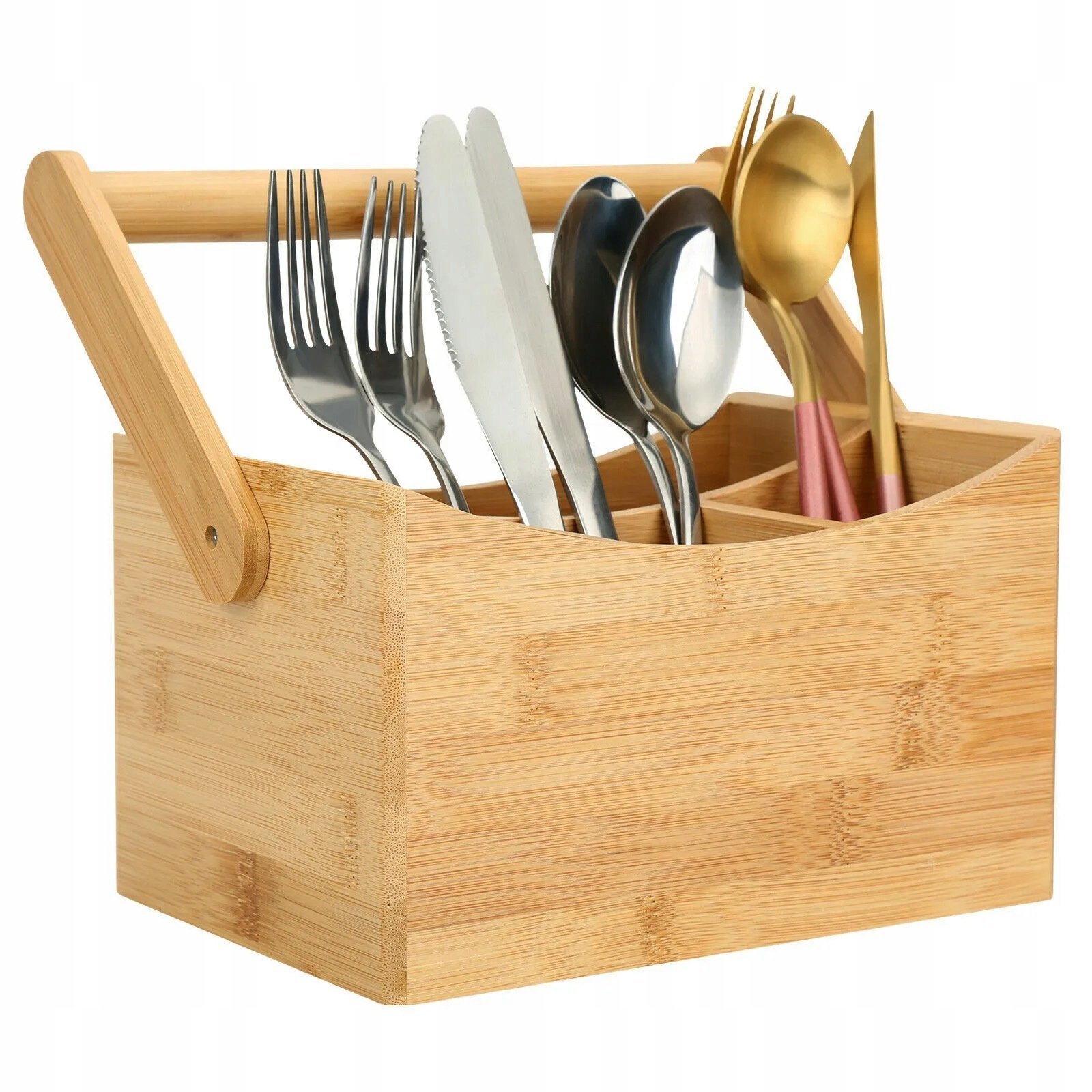 Organizator tacamuri si servetele 5Five Bamboo cu maner, bambus, 24x14x24 cm, natur