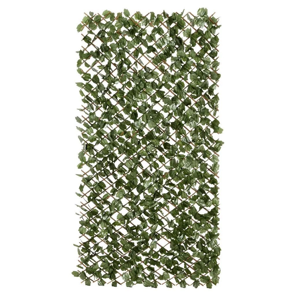 Panou de gard/paravan din lemn si frunze artificiale, extensibil, 100x200cm