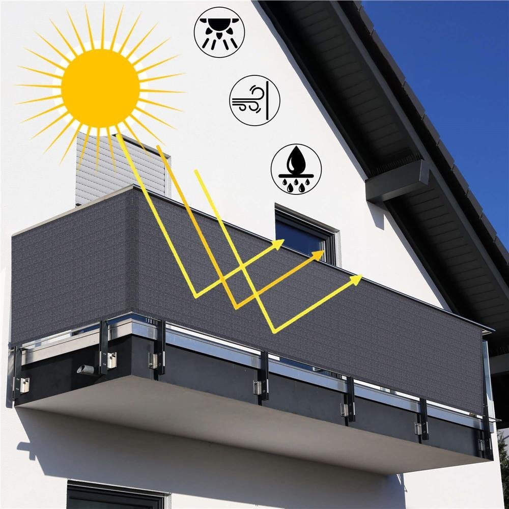 Cu aceasta prelata de balcon din HDPE, va puteti bucura de intimitate in timp ce va relaxati sau stati la soare pe balcon.Acest umbrar de balcon, fabricat din HDPE (polietilena de inalta densitate), este rezistent la mucegai si raze UV.Structura speciala „deschisa” a tesaturii permite trecerea fluxului de aer, astfel incat sa va puteti bucura oricand de o adiere proaspata pe balcon.Paravanul de protectie poate fi atasat cu usurinta la balcon, cu ochetii din aluminiu si sfoara inclusa.Culoare gri inchisMaterial: poliesterGreutate: 160g/m2Umbrire: 90%Protectie: UVImpermeabil: daDimensiuni: 1x6mSetul include: linii de asamblare