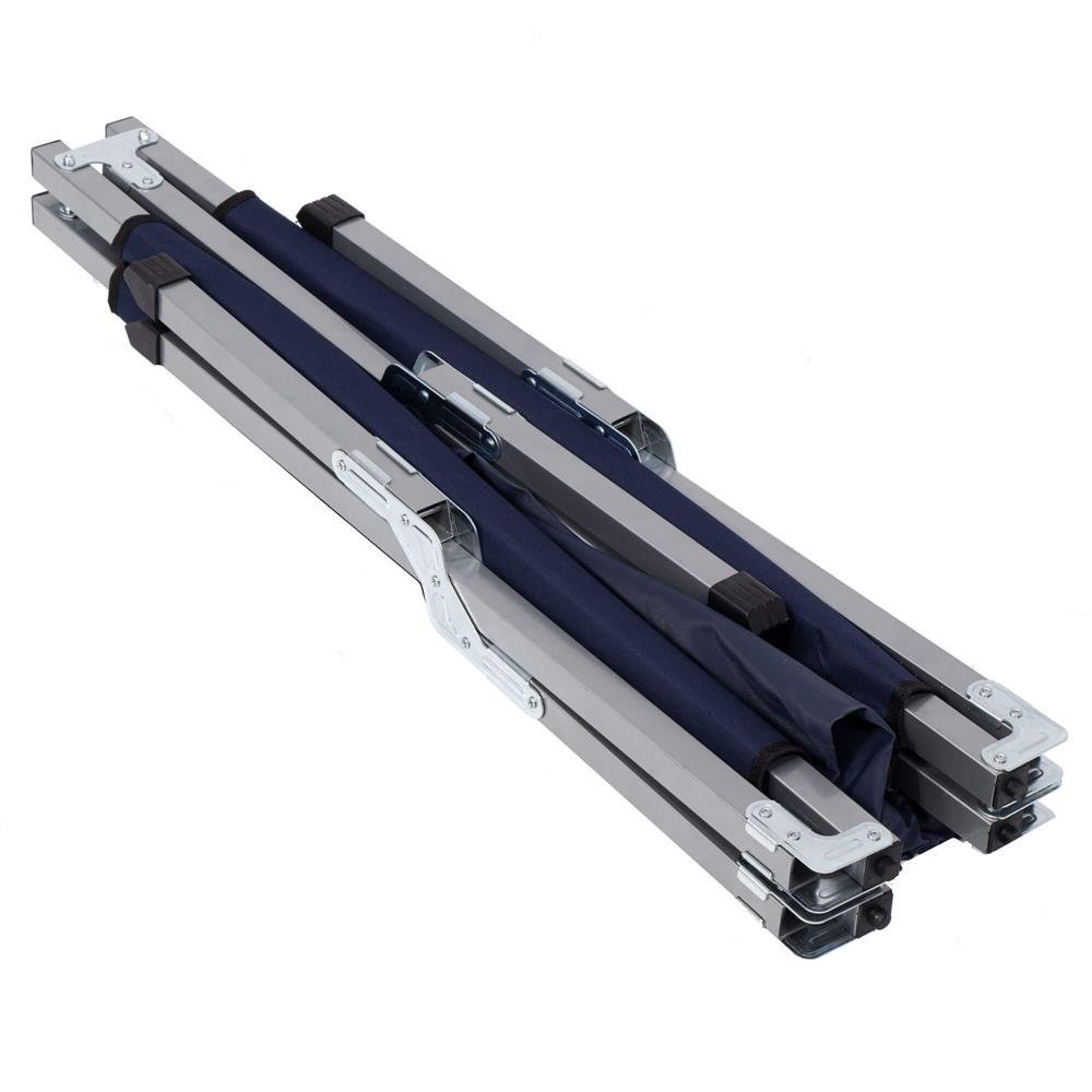 Pat pliant pentru camping, structura metalica, 190x74x42cm, 150kg, albastru marin