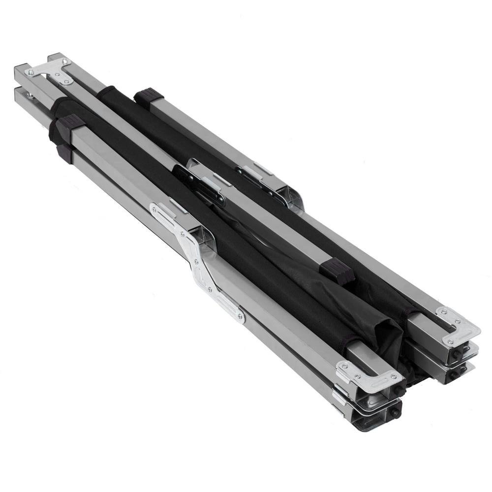Specification: Pat pliant pentru camping, structura metalica, 190x74x42cm, 150kg, negru