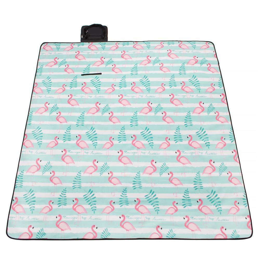 Patura pentru picnic sau plaja, cu folie izolatoare si maner, 200x200cm, flamingo, verde roz