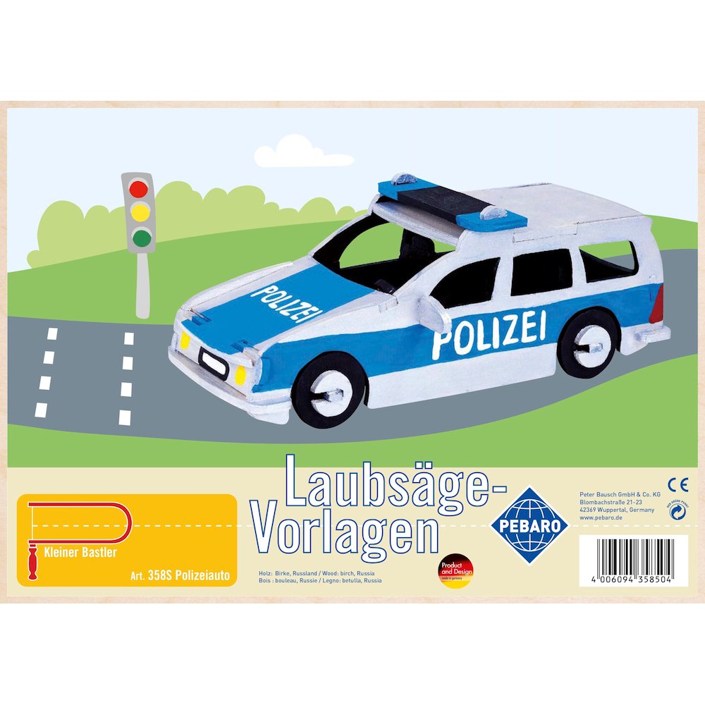 Specification: Pebaro 358S, Sablon din lemn, masina de politie, pentru traforaj, dimensiunea A4