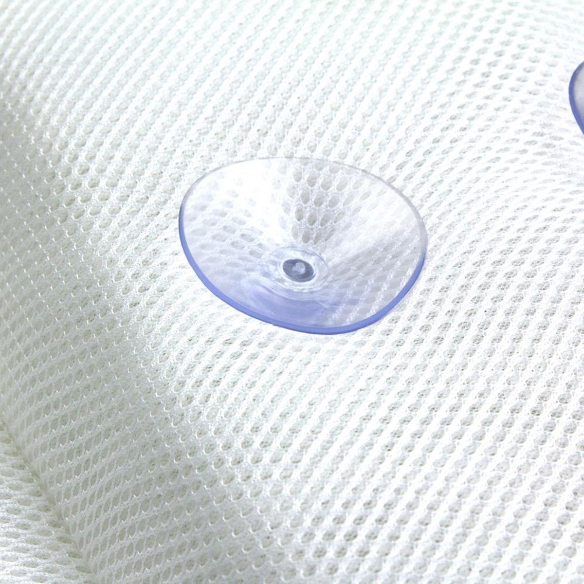 Perna de baie din material moale permeabil. Oferă un confort incredibil în timpul scăldatului datorită sprijinului adecvat pentru cap, umeri și coloana cervicală. Materialul din care este confectionata perna permite trecerea aerului si apei, ceea ce previne dezvoltarea acarienilor si mucegaiului. Aderă perfect la suprafața căzii datorită ventuzelor din spatele pernei.