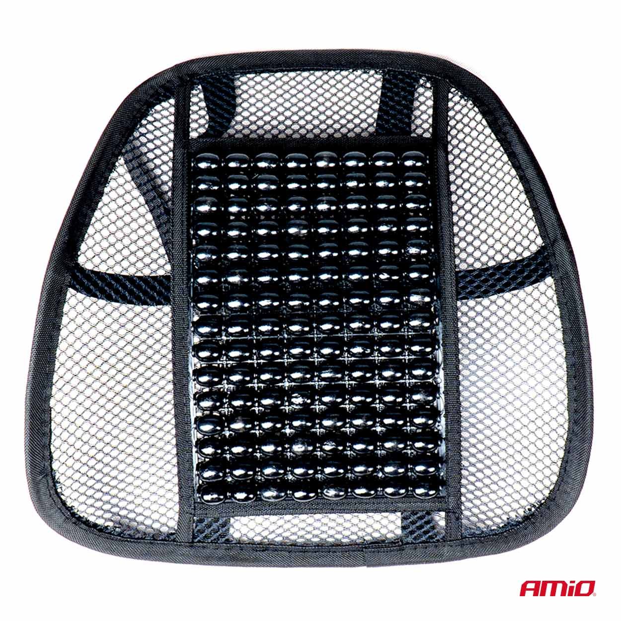 Specification: Pernita scaun cu suport lombar pentru corectare postura cu bile de masaj, dimensiune 40 x 38 cm, culoare Neagra