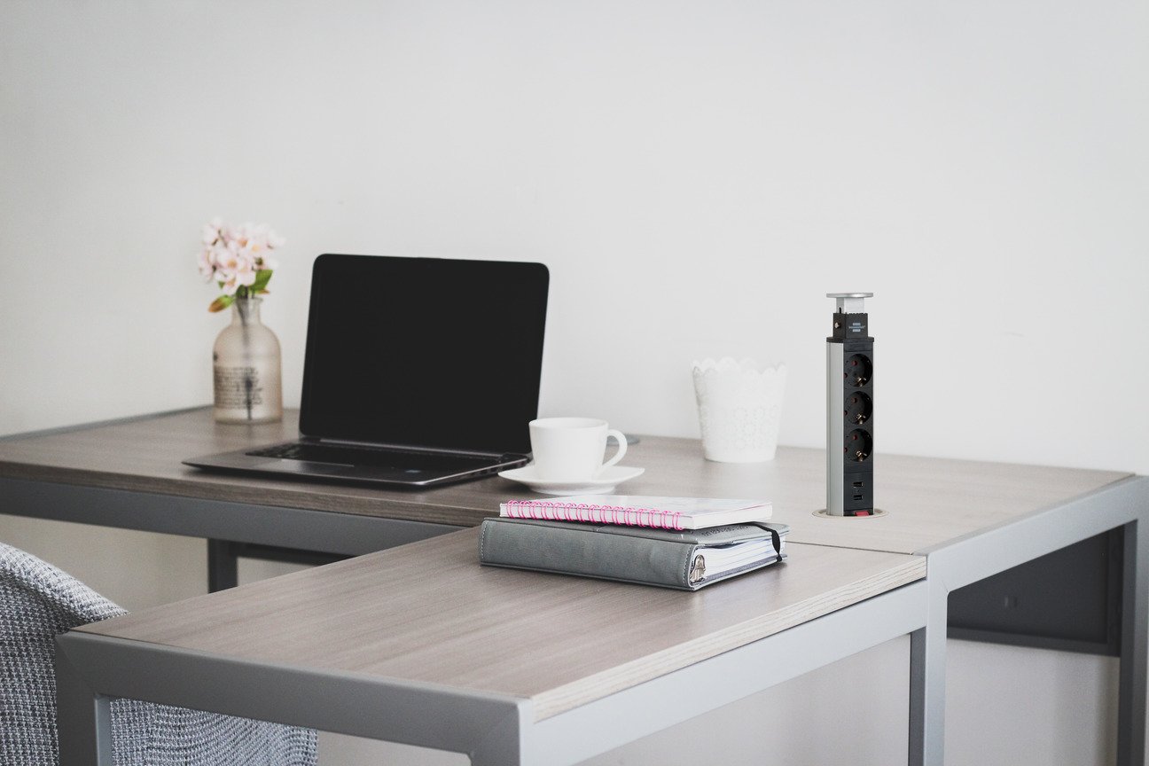 Prelungitor incorporabil Brennenstuhl 3 prize, retractabil pentru blat de bucatarie sau birou, cablu 2 M Prelungitor Power Tower 3er cu prize multiple de la Brennenstuhl in culoarea aluminiu negru si cablu de 2m impresioneaza prin calitatea si siguranta in toate domeniile. Nu numai ca are o protectie sporita impotriva contactului accidental, dar convinge si prin urmatoarele caracteristici: Priza de masa retractabila pentru instalare permanenta. Se potriveste discret cu suprafata mesei. Potrivit pentru locul de munca, bucatarie, atelier acasa. 3 prize cu impamantare 2 prize USB total 2.1A Priza inovatoare de masa, design flexibil. Poate fi introdusa complet in blatul mesei Instalare usoara, rapida, gaura 60 mmO Design subtire Carcasa modelata, robusta din aluminiu Prize de contact de protectie dispuse la 45 Afisare functie Prize cu protectie sporita impotriva contactului accidental Lungime cablu: 2 m
