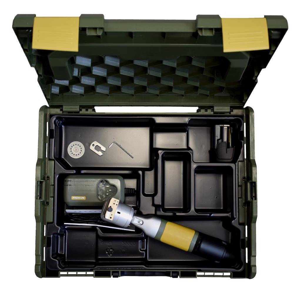 Proxxon 10006, Aparat portabil pentru ascuțirea electrozilor TIG, cu acumulator, unghiuri de șlefuire 30° și 60°, diametru electrozi 1,6 – 3,2 mm