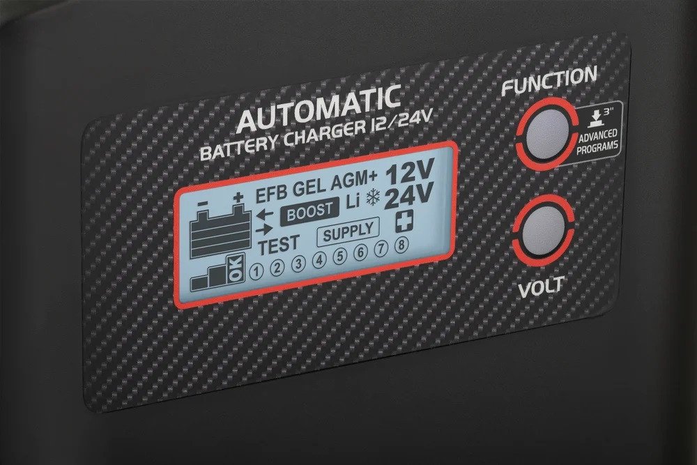 Incarcator electronic multifunctional pentru baterii, incarcator si tester pentru baterii WET, GEL, AGM, MF, PbCa, EFB, Li 12V/24V cu afisaj LCD.