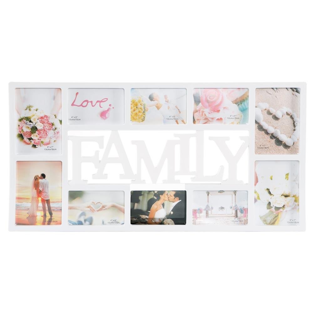 Rama foto de perete, colaj de 10 fotografii, 37x72cm, alb