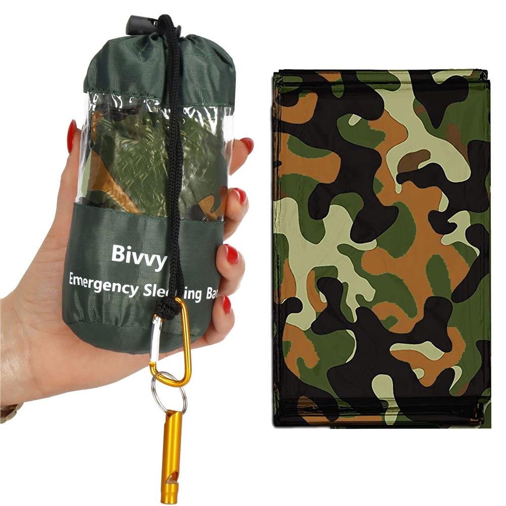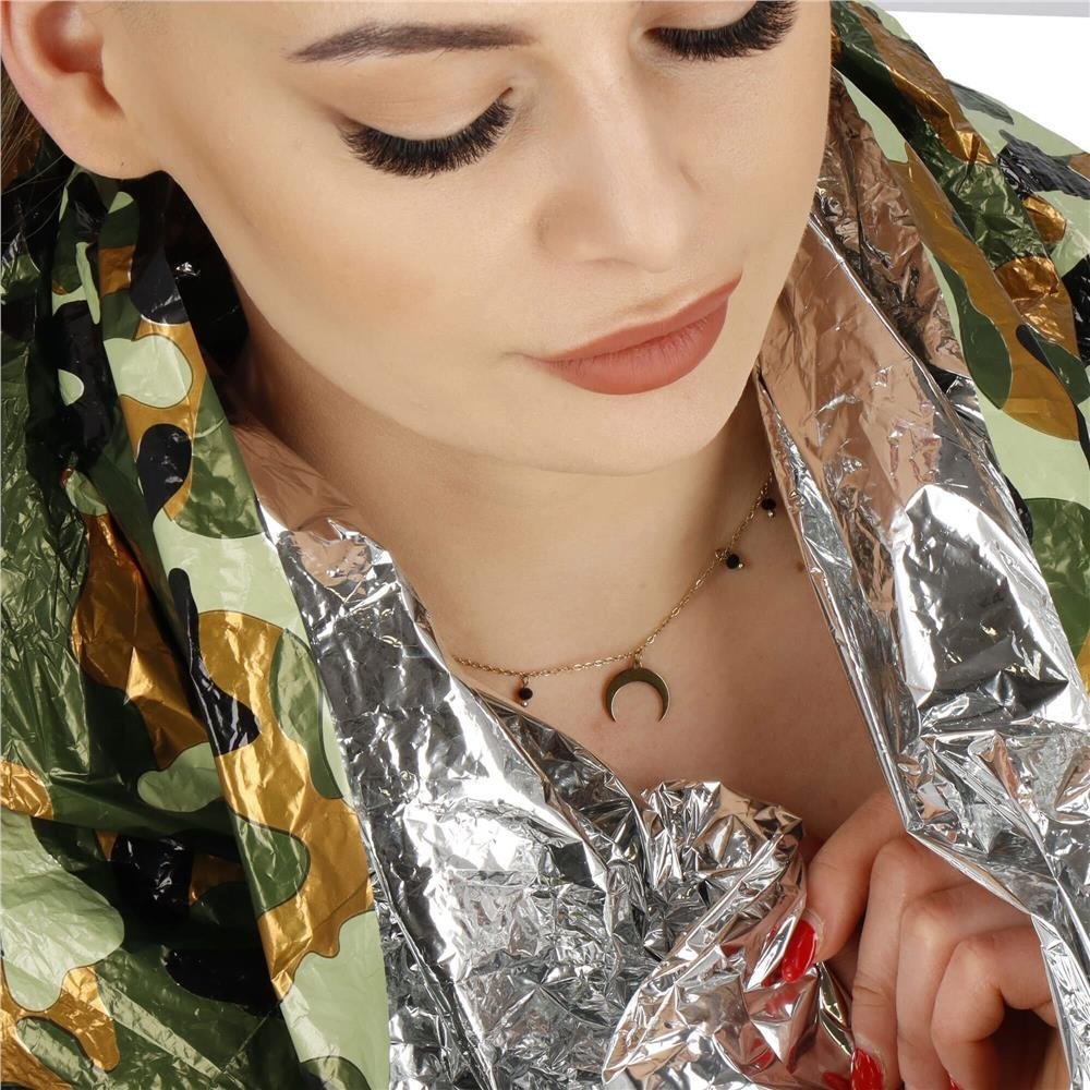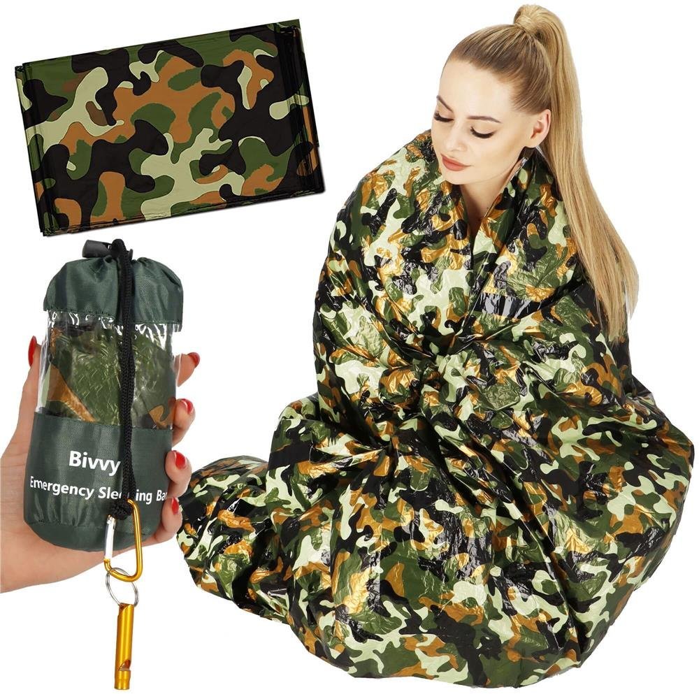 Sac de supravietuire anti hipotermie, umezeala, ploaie si vant, 120x200cm, verde camuflaj