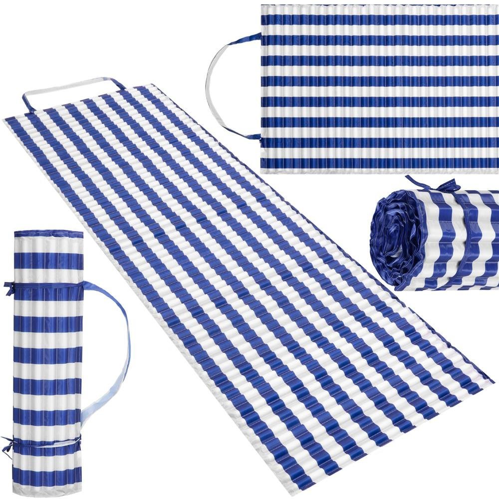 Saltea plaja pliabila din spuma EPE, cu maner si prindere, 180x60x1 cm, albastru cu dungi