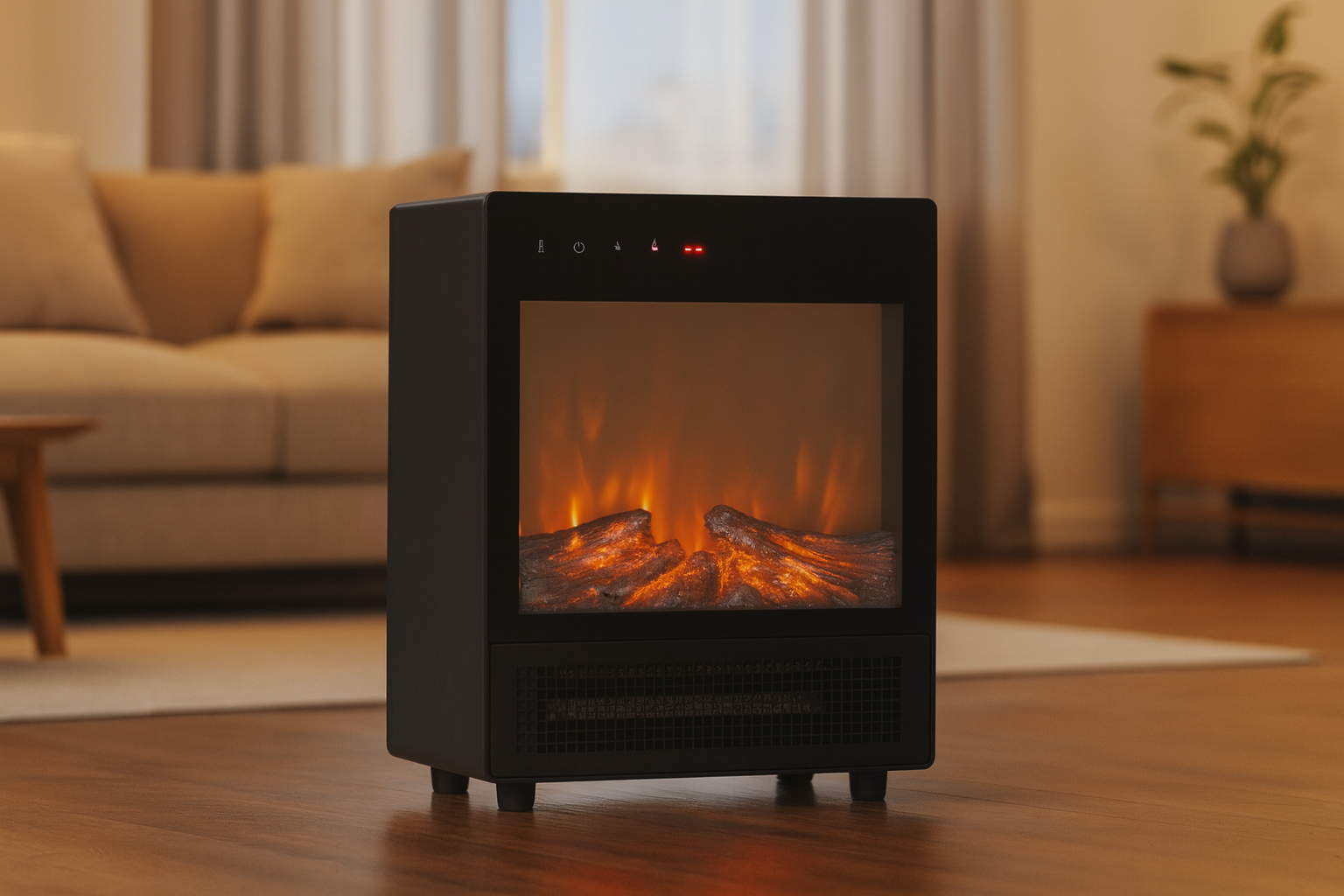 Semineu electric cu efect de flacara, 2000W, 2 trepte, termostat, 29x16x39 cm, negru