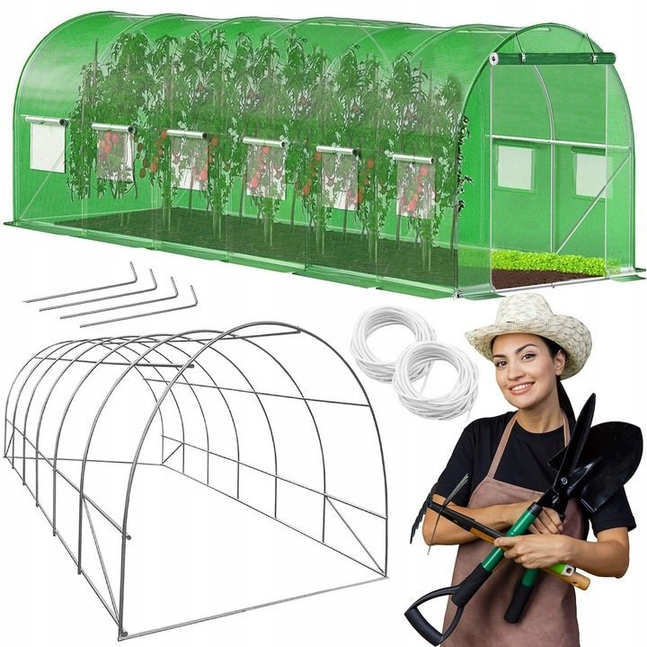 Specification: Sera de gradina, tip tunel cu cadru metalic, 300x600cm, 13 ferestre, verde, 18 mp