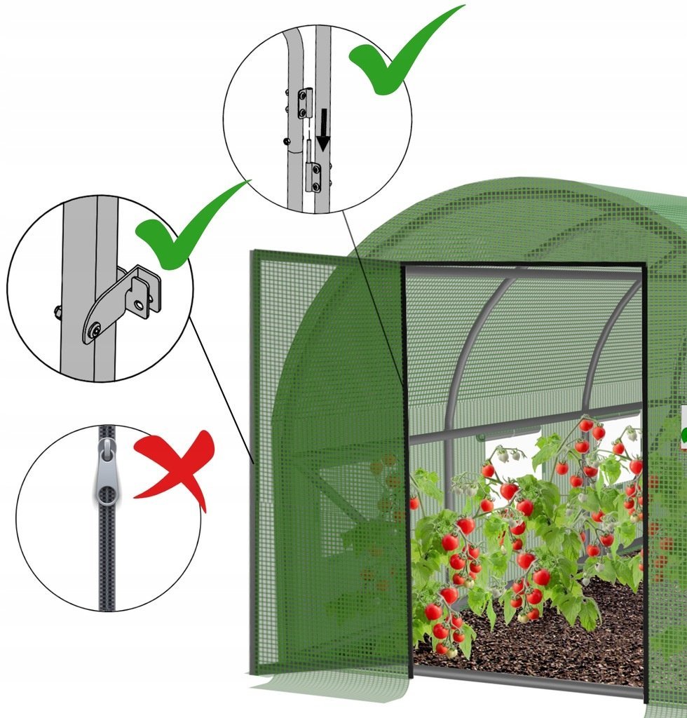 O sera de gradina complet va proteja in mod ideal plantele, culturile de conditiile meteorologice nefavorabile sau de daunatori. Este o propunere senzationala pentru pasionatii de cultivare in gradina si in solarii. Un tunel de folie va accelera si va imbunatati randamentul culturilor si va crea microclimatul potrivit pentru culturile si recoltele dumneavoastra. PARAMETRII: Dimensiunile tunelului: 10 m x 5 m x 2 m (+/- 5cm) Material : folie PE 140g/m² cu filtru UV4 Cadru: 25 x 0,65 mm Plasa PP verde infuzata in stratul de acoperire a foliei protejeaza impotriva ruperii 1 usa cu cadru metalic (pe balamale), 20 ferestre Cadru metalic galvanizat din otel zincat Flansa de pamant pentru patrunderea in sol Ferestre cu velcro cu plase de tantari 10 segmente Kit de fixare la sol Rezistent la intemperii Usa cu cadru metalic si balamale inovatoare – comoditate si durabilitate Fara fermoare = fara defectiuni sau blocaje. Intrare stabila si usor de utilizat chiar si pe ploaieTunelul are o intrare complet inchisa, inclusiv pragul! In tunelurile conventionale, chiar si atunci cand sunt inchise, ramane un spatiu ingust sub usa. Aici intra melcii cei mai mari daunatori ai culturilor noastre de sera. Gulerul de pamant este sapat in jurul serei.Puteti sa inchideti bine tunelul si sa va bucurati de culturile dumneavoastra fara a folosi preparate chimice Flansa inferioara pentru acoperirea cu pamant Impiedica patrunderea daunatorilor nedorite si stabilizeaza structura. 2 tuburi suplimentare pentru plante cataratoare Tunelurile au o functie de suspendare a coardelor pentru plante precum rosiile, mazarea sau sparanghelul. Folie PE 140g/m² cu filtru UV4 Plasa PP verde fuzionata in pelicula de acoperire protejeaza impotriva ruperiiCadru stabil conectat prin suruburi.Zincat cu precizie cu dopuri de plasticDiametrul tubului: 25 mmGrosimea tubului: 0.65 mmFerestre rulanteMontat pe o curea robusta. Ferestrele sunt prevazute cu plase de tantari. Set de cuie Consolideaza constructia tunelului. Cablu atasat cu curele direct la cadru INSTRUCTIUNI DE INSTALARE: Tunelurile noastre sunt echipate cu 2 tuburi suplimentare in partea superioara, care sunt responsabile pentru stabilitate si permit legarea sforilor pentru plantele cataratoare.Pasul 1 Desfasurati componentele de baza asa cum este descris in instructiunile de utilizarePasul 2. Montati suruburile in gauri si strangeti-le usor, astfel incat sa nu opuna rezistenta. Nu le strangeti completPasul 3: Imbinati tuburile in arcuri. Insurubati piesele finisate la suruburile instalate anterior de la pasul "2".Pasul 4. Ridicati primul arc in pozitie verticala si blocati-l cu tubul inclinat.Pasul 5. Ridicati toate arcurile, conectandu-le intre ele cu bara transversala superioara. Inca nu strangeti toate suruburile pana la capat.Pasul 6 Asamblati celelalte bare transversale si tuburile diagonale. Cand toate piesele sunt asamblate, puteti strange suruburile pana la capat. Asezati folia si ancorati tunelul in pamant.Daca in zona dvs. exista rafale puternice de vant sau daca sera se va afla intr-o zona deschisa, sera trebuie ancorata cu ancore suplimentare pentru sol, cum ar fi tije metalice. INSTRUCTIUNI IMPORTANTE DE UTILIZARE: In perioada de iarna, in afara sezonului de cultivare, acoperisul trebuie indepartat. Inainte de depozitare, folia trebuie curatata is uscata temeinic. Procesul de pliere a foliei trebuie realizat cu grija, pentru a evita ruperea acesteia in zonele de indoire. In caz de prognoze meteo extreme (vant puternic, ninsoare,grindina etc.), acoperisul trebuie indepartat imediat de pe cadru. Producatorul nu isi asuma raspunderea pentru deteriorarea tunelului cauzata de conditii meteorologice dificile. Asamblarea si utilizarea ulterioara a produsului trebuie sa se realizeze pe o suprafata ordonata, stabila si plana. Producatorul nu recomanda amplasarea tunelului pe o suprafata inclinata. Cadrul fara folie trebuie ancorat in pamant pentru a preveni rasturnarea, sau, eventual, demontat. Usile tunelului trebuie sa fie inchise in timpul fenomenelor meteorologice intense (precum ploi, furtuni). In urma ploii, pe partea superioara a produsului se pot forma adancituri umplute cu apa. Excesul de apa trebuie indepartat imediat din pliurile foliei