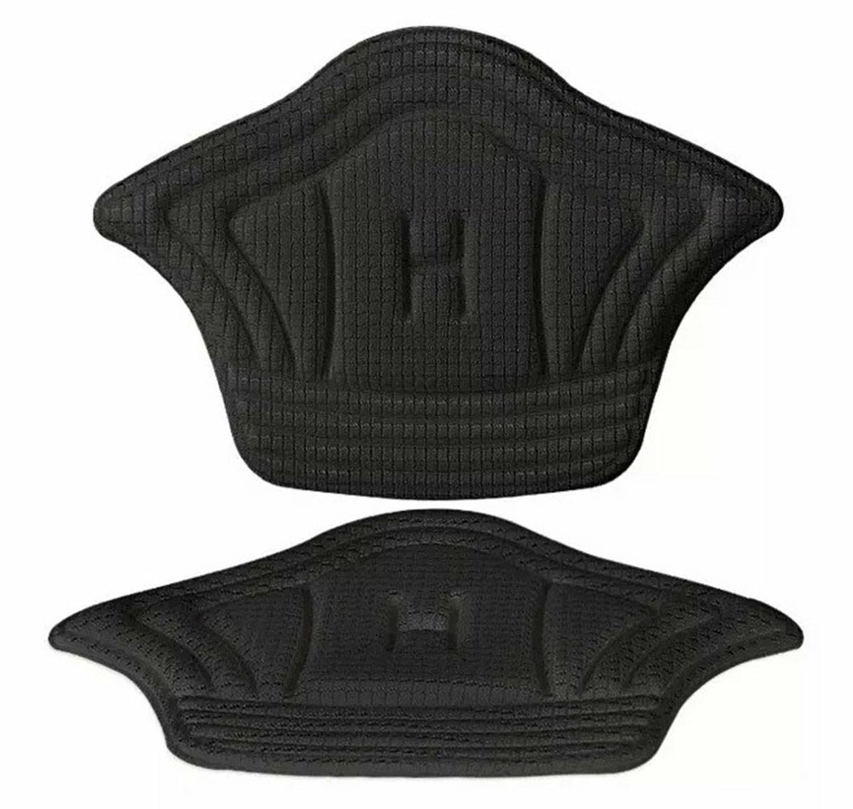 Specification: Set 10 buc. (5 seturi) de pernite protectie calcaie pentru incaltaminte, autoadezive, din spuma moale si material textil, culoare NEAGRA