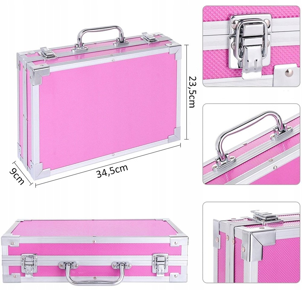 Acest produs iese în evidență față de alte seturi artistice pentru că este închis într-o valiză îngrijită, întărită, din plastic rezistent. Toate elementele setului sunt bine plasate în interior, iar totul poate fi închis cu încuietori puternice. Puteți lua setul cu dvs. oriunde datorită mânerului confortabil.