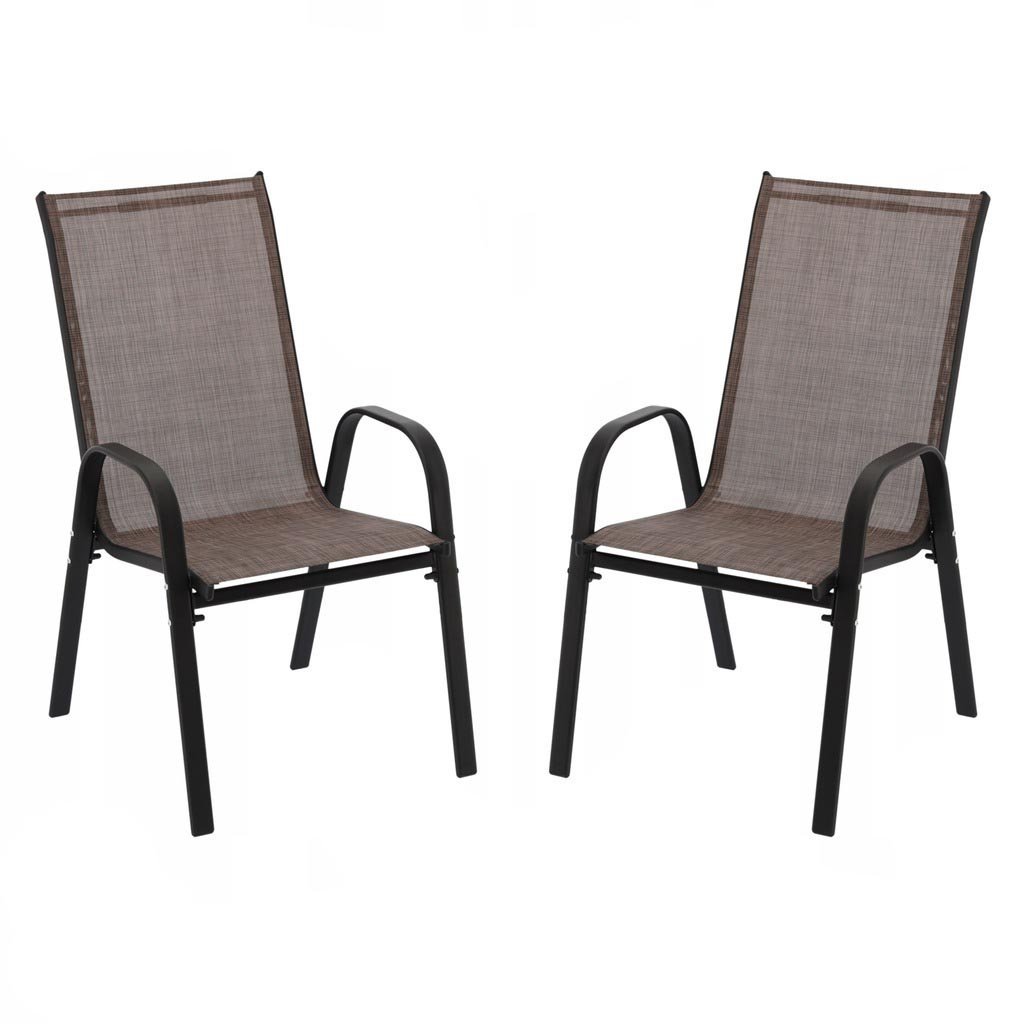 Set 2 scaune de gradina cu cadru metalic, stivuibile, 55x72x96cm, maro