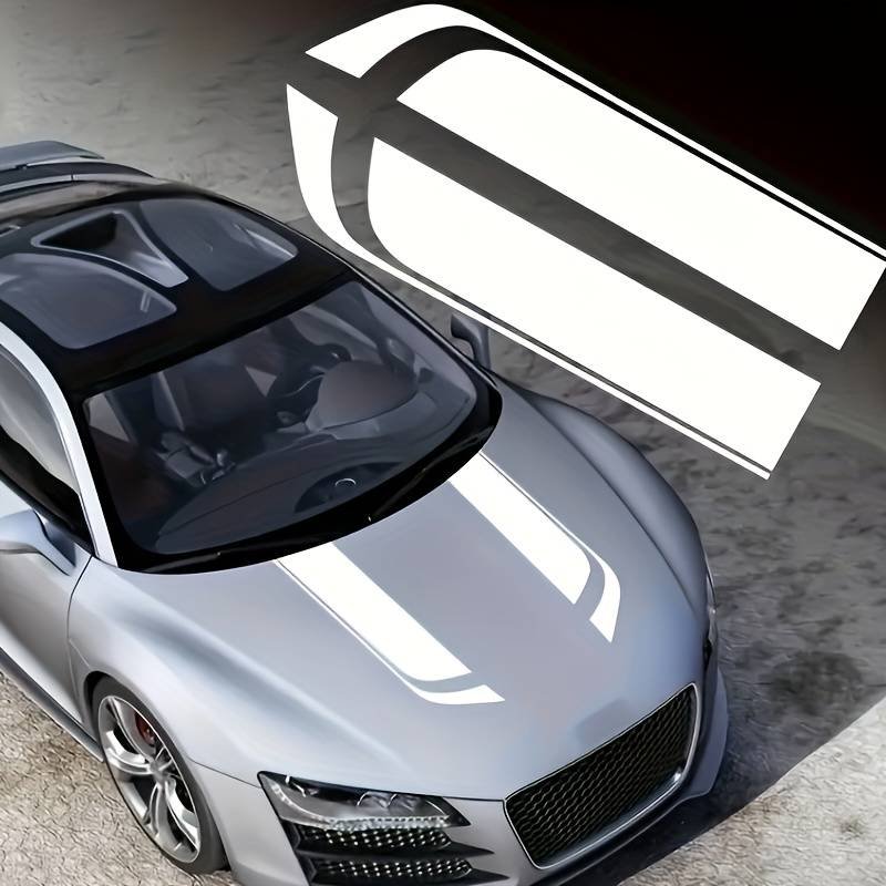 Specification: Set 2 stickere autoadezive Tuning, model „Hood Stripes V1”, dimensiune 85 x 12 cm, culoare Alba