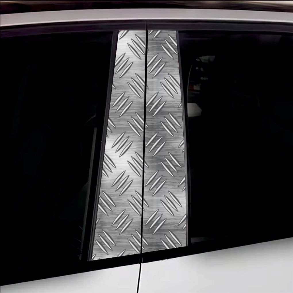 Set 2 folii printate outdoor pentru colantarea stâlpilor ușilor autoturismului dvs. Folia imprimată cu EcoSolvent Outdoor aderă pe orice suprafață plană, netedă. În cazul suprafețelor rugoase, aderența produsului va scadea considerabil.