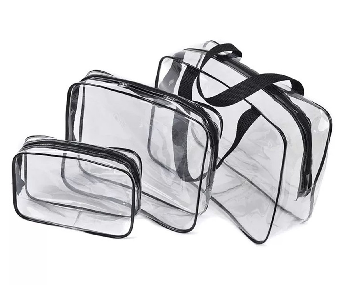 Set 3 organizatoare de cosmetice, transparente, ideale pentru calatorii