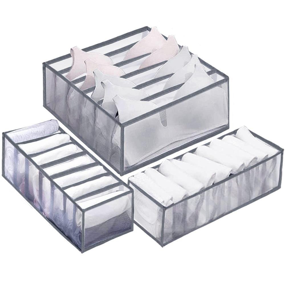 Specification: Set 3 organizatoare sertar pliabile pentru sosete/lenjerie, gri