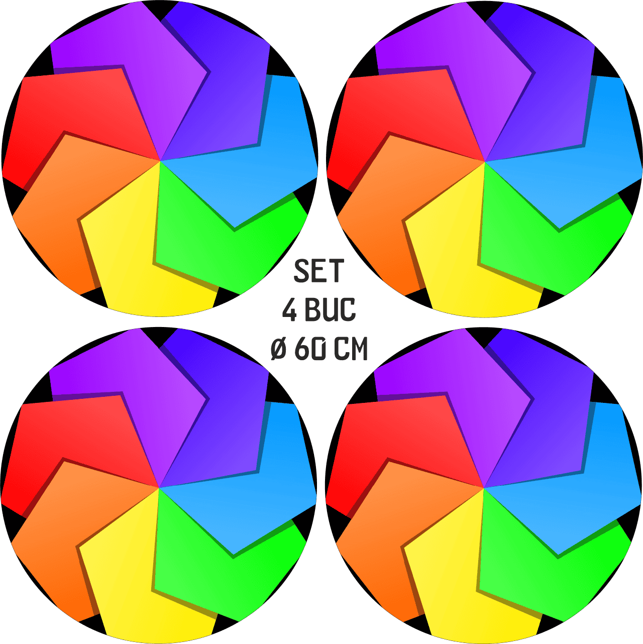 Be the first to review “Set 4 Folii Imprimate Outdoor cu EcoSolvent, autoadezive, pentru decorarea jantelor auto, dimetru 60 cm, model FJT-36”