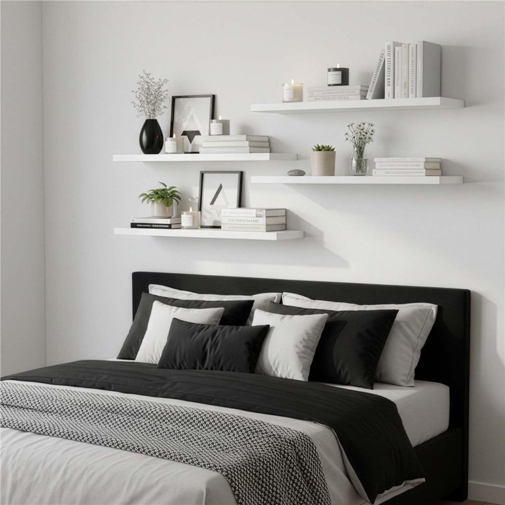 Specificatii tehnice: Numar piese: 4 rafturi Material raft: MDF Material suport: metal Culoare raft: alb Culoare suport: negru Sarcina maxima per raft: 3 kg Latime raft: 40 cm Adancime raft: 15 cm Grosime raft: 1,5 cm Distanta intre gauri montaj: 5,5 / 7,5 cm Scurta descriere: Set de patru rafturi de perete, realizate din MDF cu suport metalic, concepute pentru organizarea si expunerea obiectelor decorative sau functionale. Designul simplu permite integrarea usoara in living, dormitor sau birou. Caracteristici principale: Set complet cu 4 rafturi Rafturi din MDF cu finisaj alb Suport metalic rezistent Design simplu si modern Montaj usor cu accesorii incluse Potrivite pentru living, dormitor sau birou