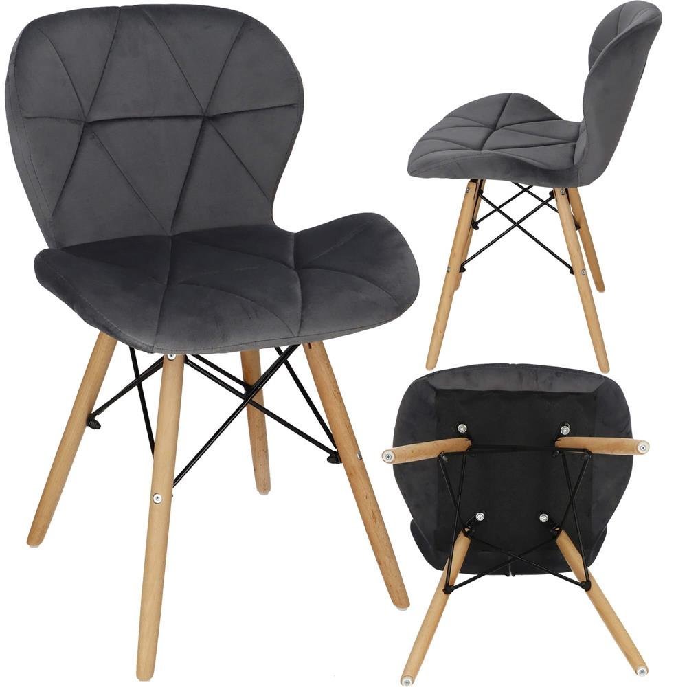 Material: catifea/ lemn / metal Culoarea scaunului: gri Culoarea piciorului: maro (lemn) Tipul de decor: matlasat Material asemanator cu velurul Spatar si sezut complet tapitate Produs pentru autoasamblare cu instructiuni incluse Toate componentele si instrumentele de asamblare sunt incluse Dimensiuni: Inaltime totala: aproximativ 72 cm Inaltimea spatarului: aprox. 33 cm Latimea spatarului in cel mai larg punct: 40 cm Latimea spatarului in punctul cel mai ingust: cm 31 cm Latimea scaunului: 46 cm Adancimea scaunului: 34 cm Grosimea scaunului: 4 cm Inaltimea de la sol la scaun: 50 cm Distanta dintre picioare in latime: 35 cm Distanta dintre picioare in adancime: 35 cm Diametrul picioarelor: 24-27 mm la imbinarile cu cadrul dimensiunea este mai mare Diametrul bazei picioarelor: 6 mm Capacitate de incarcare: 125 kg Scaunul are un sezut tapitat cu catifea, cu forme decupate interesante pe partile laterale. Picioarele sunt realizate din lemn masiv natural de fag – asigurand rezistenta si stabilitate in timpul utilizarii, in timp ce imbinarile negre intaresc intregul cadru si sunt, de asemenea, decorative. Design-ul unic, cu aspect deosebit, se potriveste perfect intr-un cadru glamour, clasic sau modern. Tapiteria de catifea ofera confort, fiind foarte moale si placuta la atingere. Acest material nu cauzeaza alergii.
