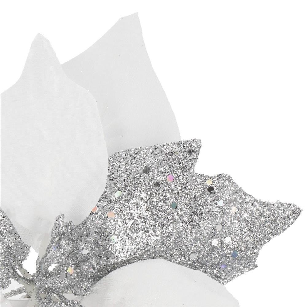 Set 5 ornamente pentru bradul de Craciun, stea Poinsettia, 23cm, alb argintiu