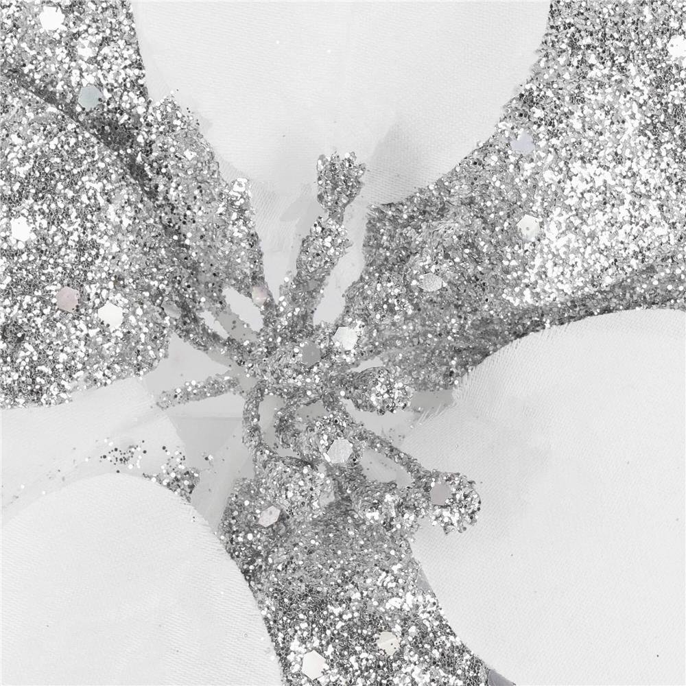 Specification: Set 5 ornamente pentru bradul de Craciun, stea Poinsettia, 23cm, alb argintiu