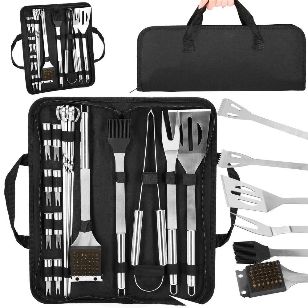 Set accesorii pentru gratar din inox, 20 de piese inclusiv perie, husa transport