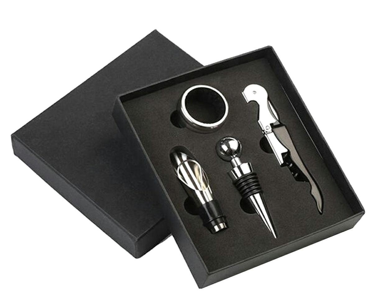 Set Cadou „Accesorii Vin, 4 piese” in cutie estetica, culoare Neagra