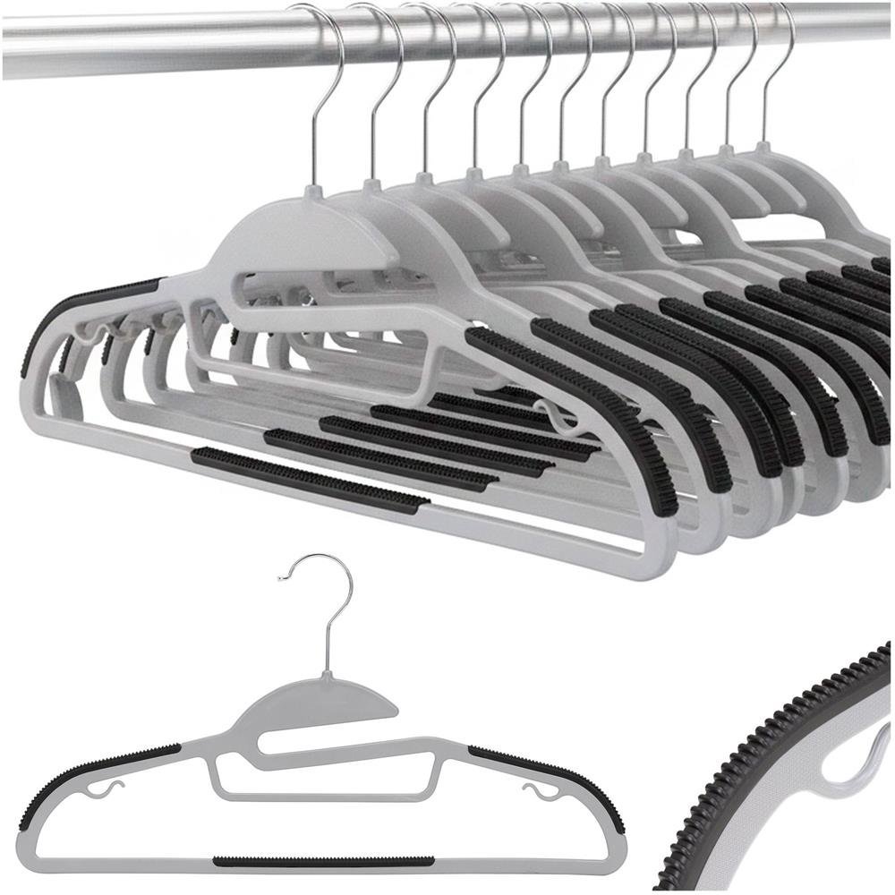 Set de 20 de umerase antiderapante pentru haine, din PE, cu carlig metalic rotativ, 41 cm, gri si negru