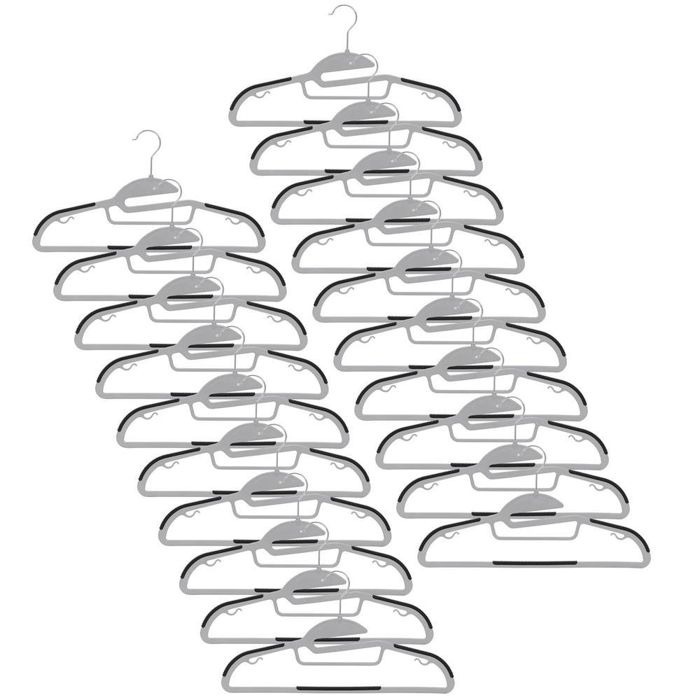 Specification: Set de 20 de umerase antiderapante pentru haine, din PE, cu carlig metalic rotativ, 41 cm, gri si negru