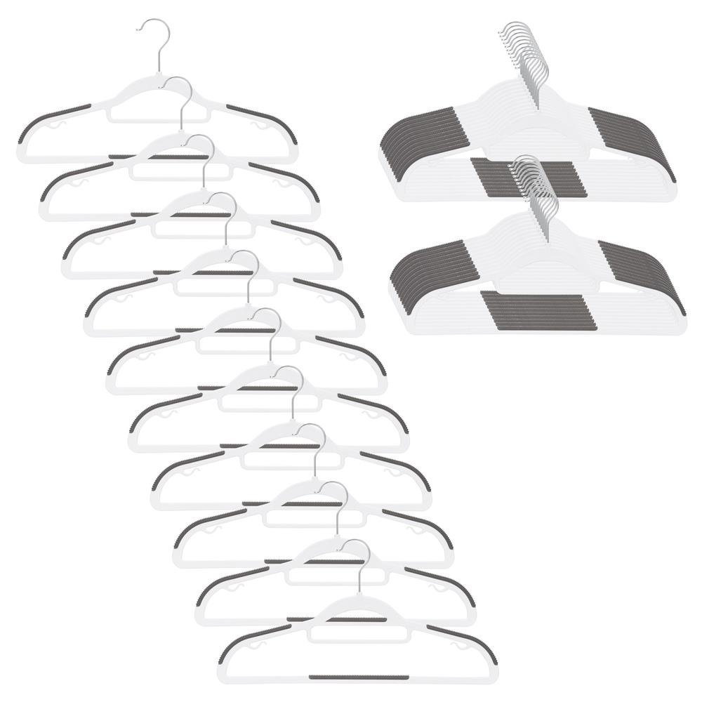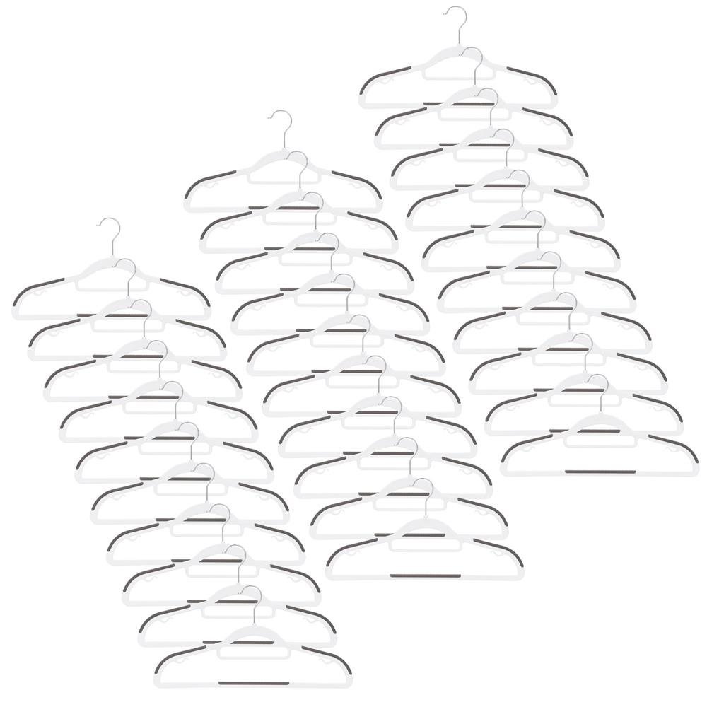 Specification: Set de 30 de umerase antiderapante pentru haine, din PE, cu carlig metalic rotativ, 41 cm, alb si gri