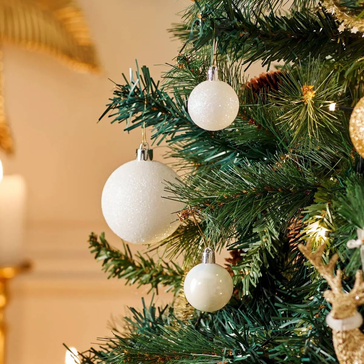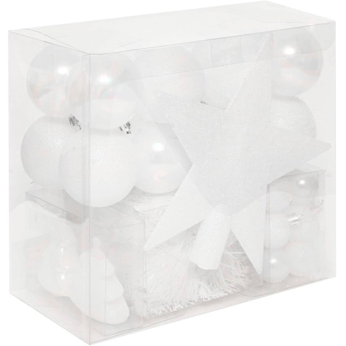 Specificatii tehnice Culoare: Alb Material: Polistiren (R_PS) Numar piese: 44 Continut set: 1 varf de brad 20 cm, 1 ghirlanda 7 cm, 24 globuri 30 mm, 16 globuri 60 mm, 2 mini brazi Dimensiuni produs: L. 8 x P. 8 x H. 270 cm Scurta descriere Set complet de decoratiuni albe pentru bradul de Craciun, conceput pentru a aduce un aspect elegant si luminos in locuinta. Include globuri in doua dimensiuni, o ghirlanda, un varf de brad si mini brazi decorativi. Ideal pentru un decor de sarbatoare armonios si rafinat. Caracteristici principale Set complet de 44 decoratiuni pentru bradul de Craciun Culoare alba eleganta, potrivita pentru orice stil de decor Include globuri, ghirlanda, varf de brad si mini brazi Fabricat din polistiren usor si durabil Ambalat in cutie transparenta practica pentru depozitare