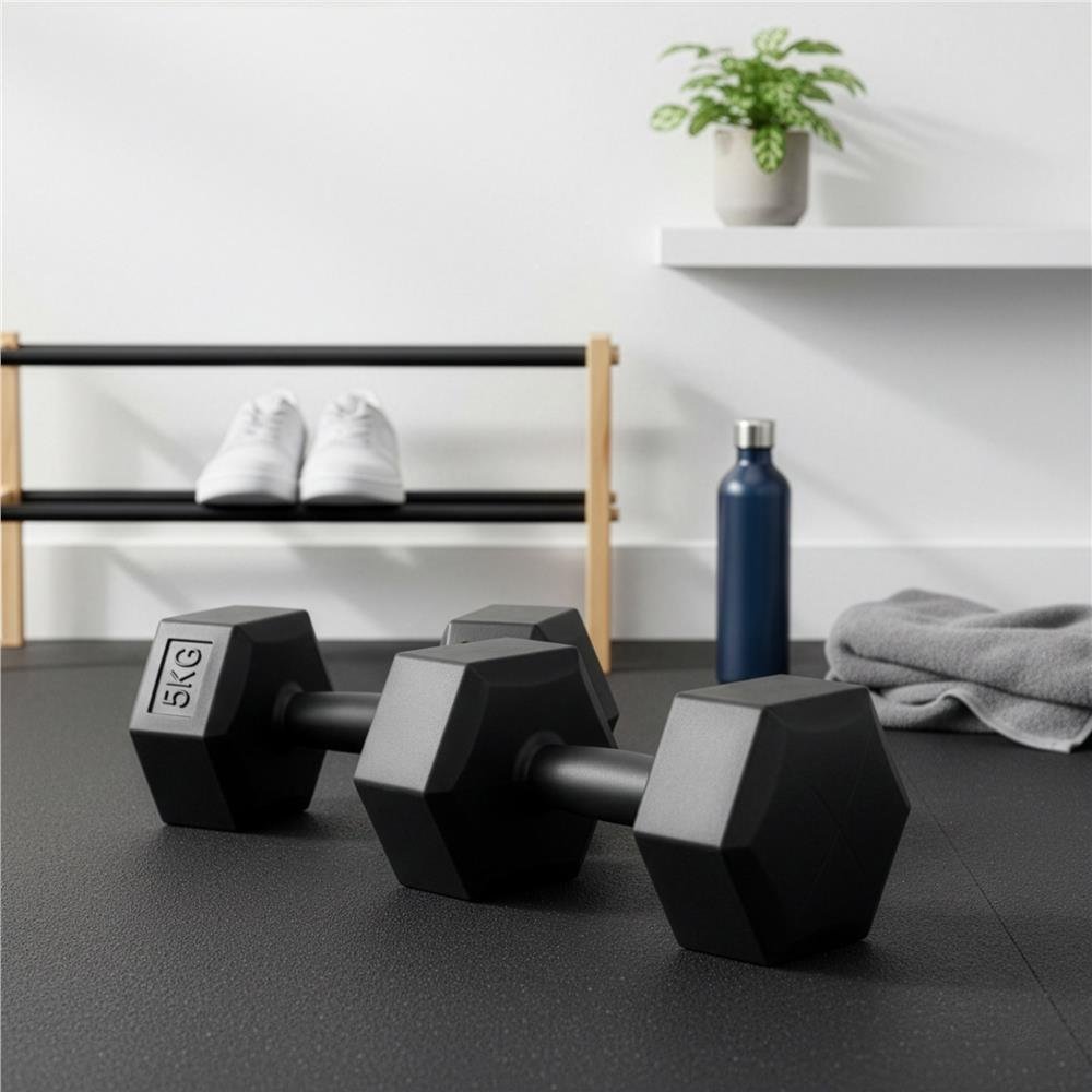 Set gantere hex 2×5 kg, bitum cu invelis rezistent PP, negru