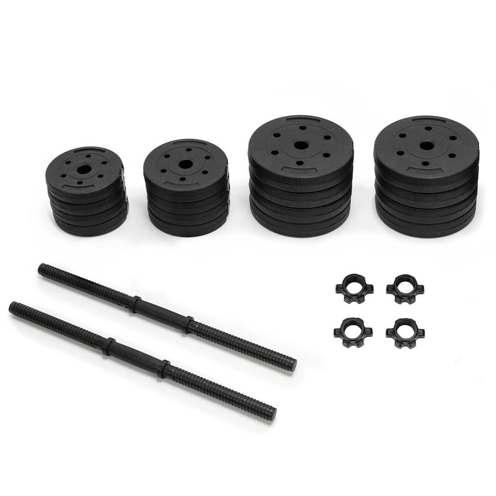 Specification: Set gantere reglabile 30 kg (2 x 15 kg), discuri cu invelis PP, negru