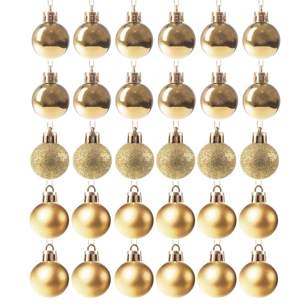 Set globuri de Craciun, 30 bucati, 3 modele, 3cm, auriu