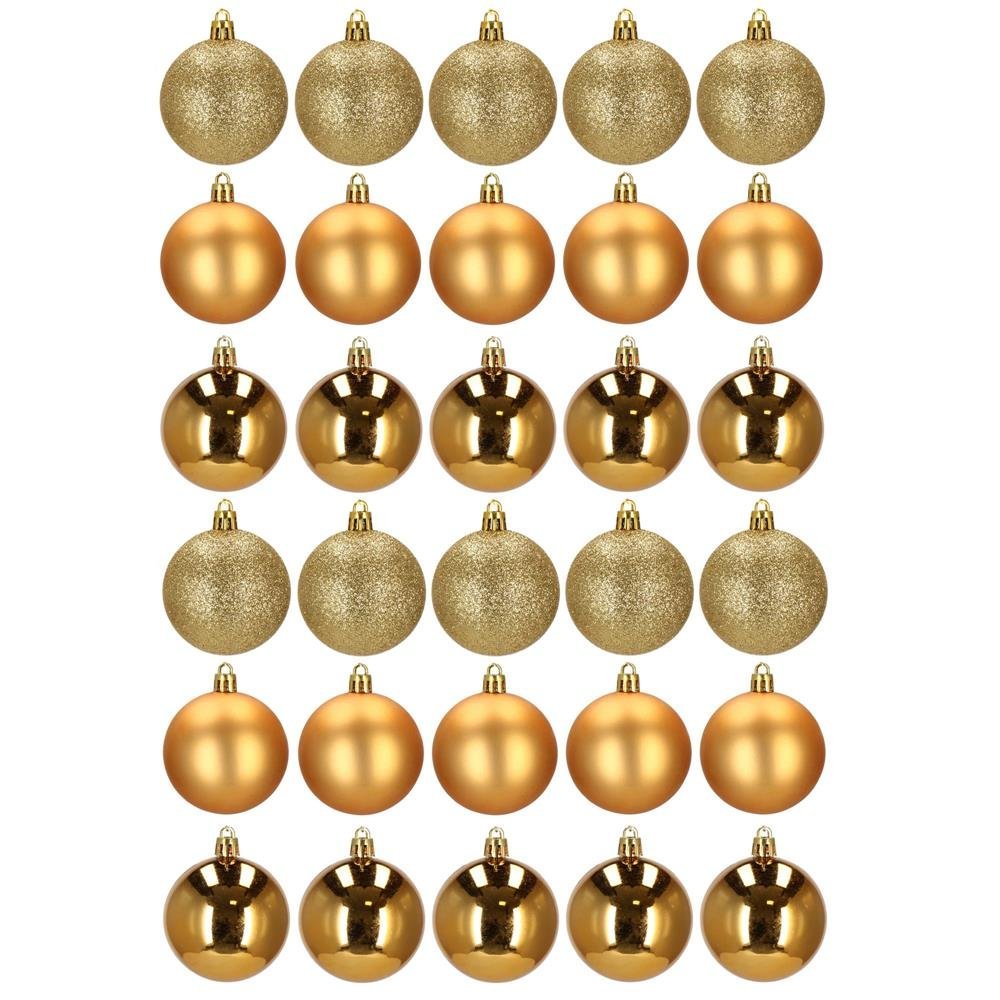 Set globuri de Craciun, 30 bucati, 3 modele, 6cm, auriu