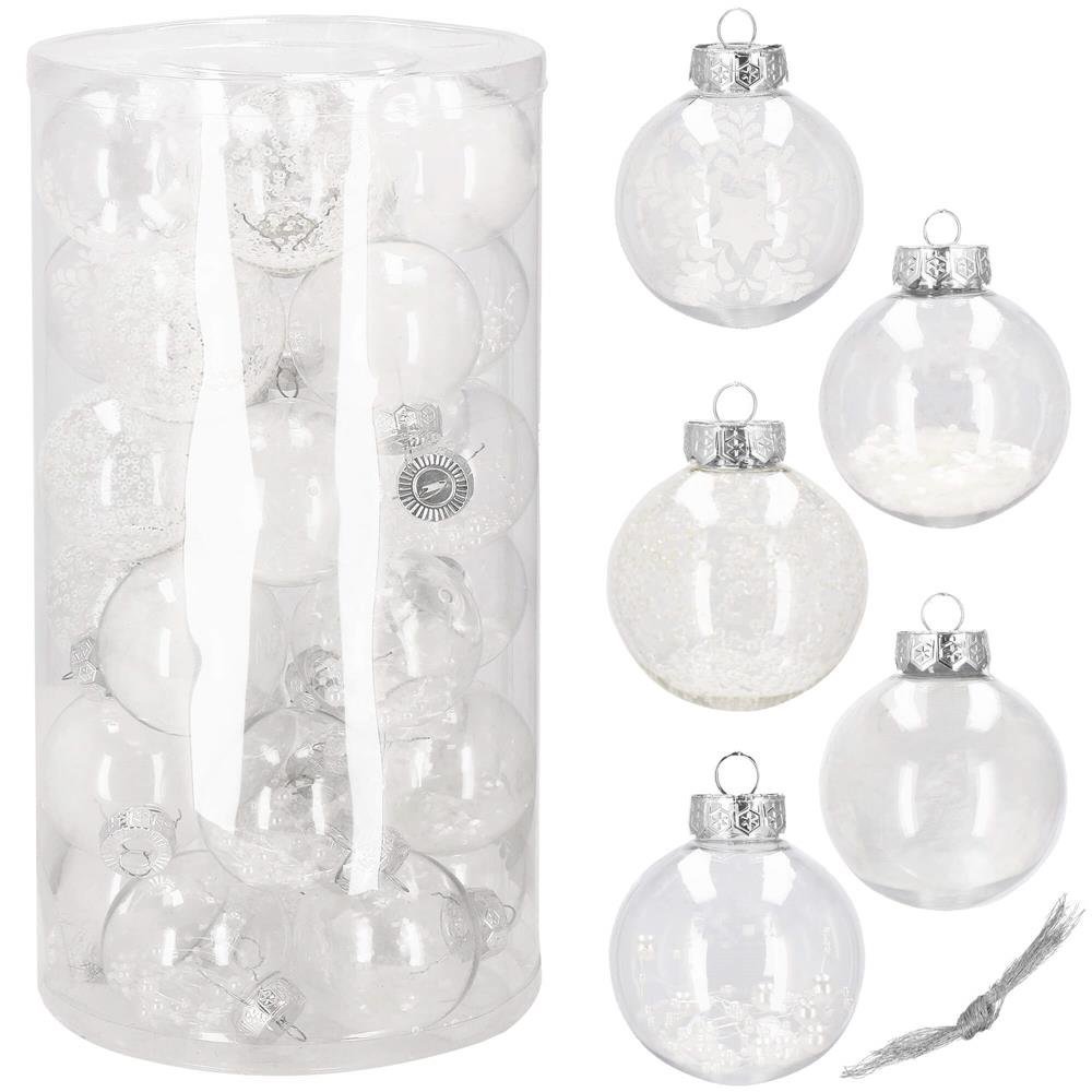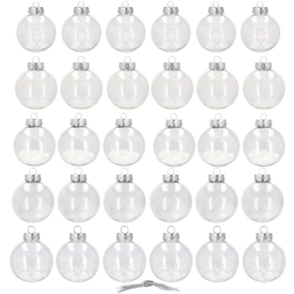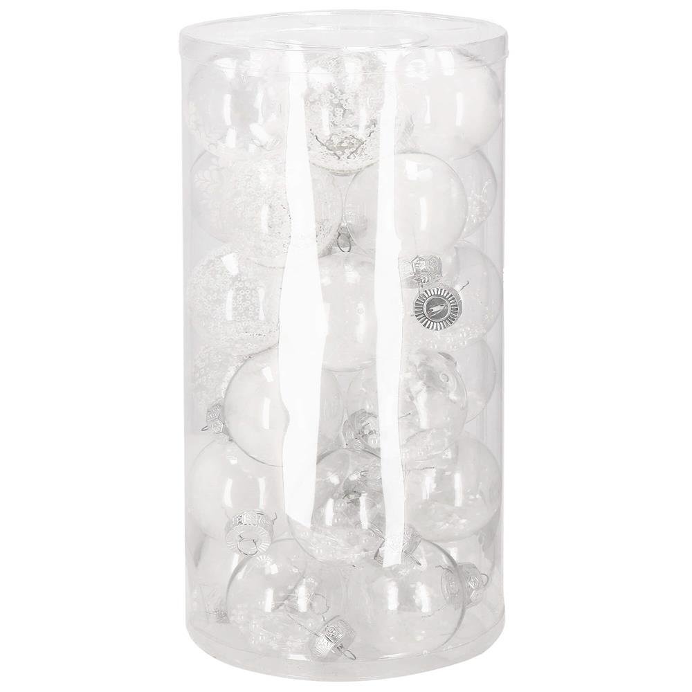 Set globuri de Craciun Inedit, 30 bucati, 7cm, transparente si alb